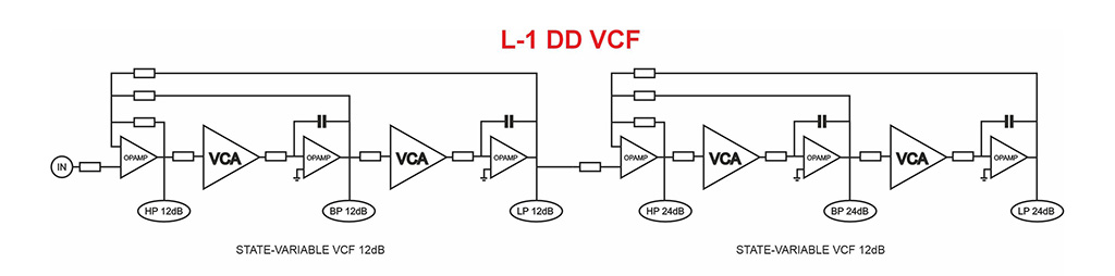 - Full voltage control over cutoff frequency and resonance level.