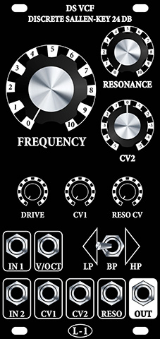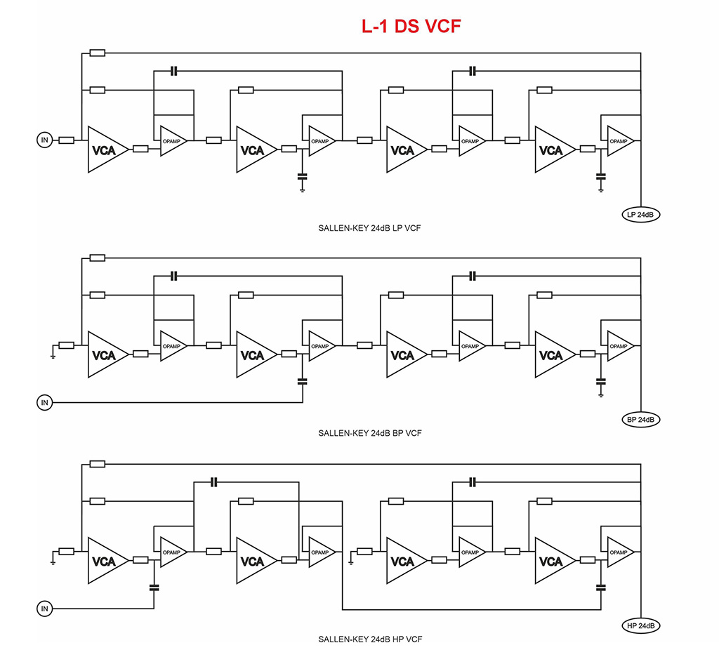 As other L-1 discrete filters, the circuit is based on original Discrete Blacksea gain cells and best silver-mica capacitors.