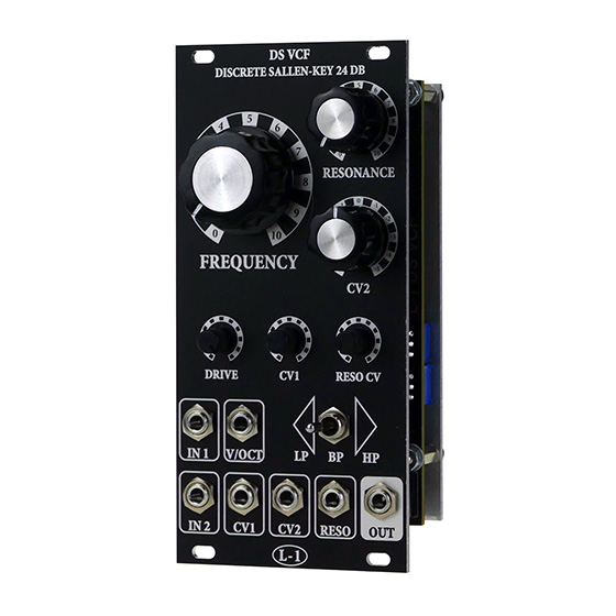 Sallen-key filter provides 24dB/oct filtering with control over frequency and resonance.